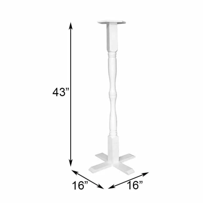 Beautifully showcase your existing bird house using this Home Bazaar White Novelty Pedestal with Ground Auger. The alternating rounded and square sections on this post bring a striking look to your garden in moments, and its white color offers a bright finish. Detailing along the unit evokes a newel post, and a generous, hexagonal top plate accommodates your existing bird house easily. Two, 16″ long cross bars form a stable support for this post, allowing you to rest it on a deck or patio. For placement in the yard, affix the included, 11.75″ long, steel auger to the base of the item, and screw it into soil for plenty of stability. The top mounting plate on the post supports houses with a 9″ long and 5″ wide or larger base, and the wooden construction enhances your outdoors. Elegantly display a bird house on this White Novelty Pedestal with Ground Auger. Assembly required.Â