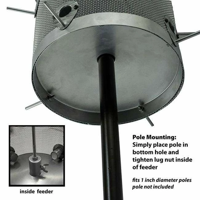Continue the country chic motif of your home décor into your landscaping with this Woodlink Rustic Farmhouse Mesh Silo Bird Feeder. The robust, steel construction and gray hues of this unit enhance its farmhouse style, completed by its classic shape. The cylindrical, mesh body holds 8.75 quarts of sunflower seed, mixed seed, or peanut splits, and 8 ports around the reservoir allow a few birds to dine. A perch beneath each port provides a spot for your feathered friends to rest and reach the seed, while clinging birds can grip the mesh cylinder for added avian activity. A generous, 12 paneled roof fully covers the reservoir, protecting seed from the elements, and a steel rod through the center of the piece adds strength and stability. Unscrew the top knob to remove the roof and clean or refill the item, and hang the feeder with the metal loop for easy placement. The unit can also be pole mounted using a 1” outer diameter pole (not included), and the steel construction forms a hardy station. Continue the timeless tradition of feeding birds by placing this Rustic Farmhouse Mesh Silo Bird Feeder in your yard.